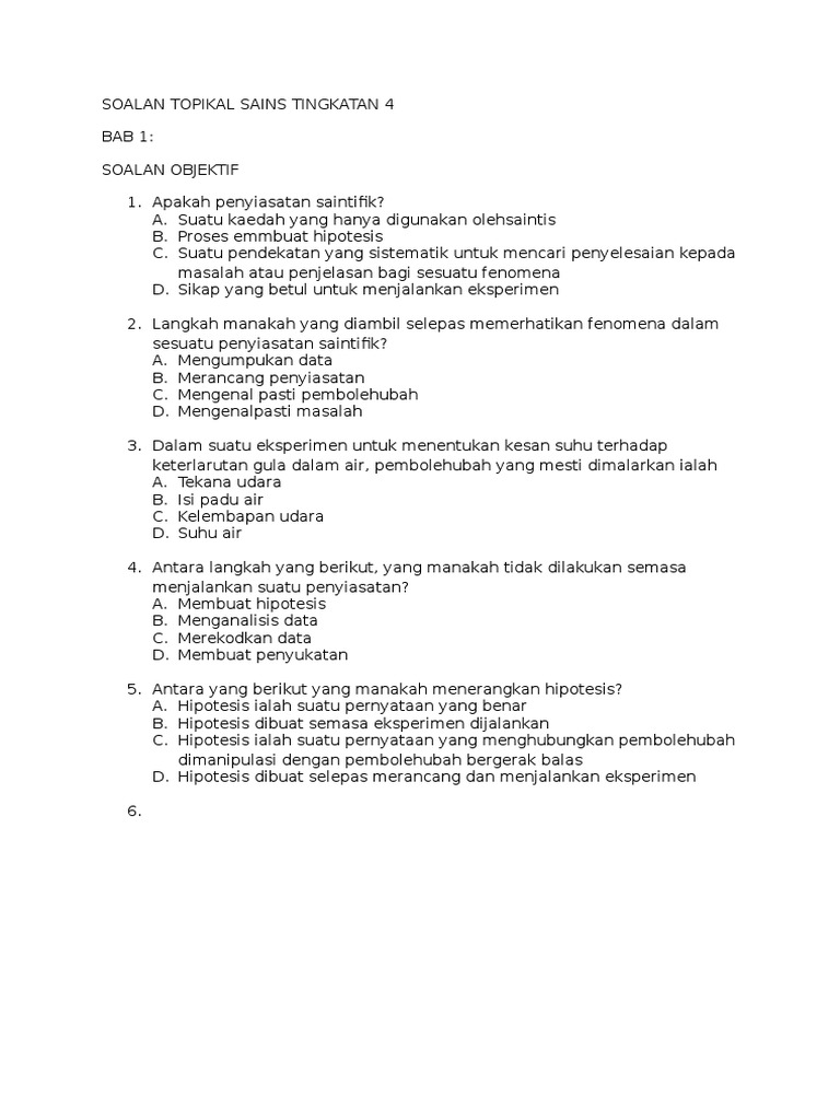 Y6 Tahun 6 - Soalan by tcersbrina. Sains Tingkatan 5 Bab 1 Soalan Struktur Bahagian A Section A b Nyatakan hipotesis untuk eksperimen ini. Contoh karangan bergambar tingkatan 4.
